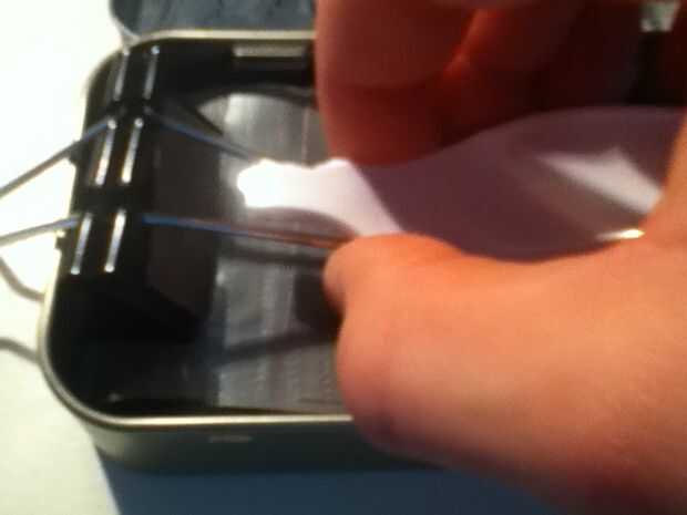 Coloque la cuchara al lado de la lata Altoids así que usted podría medir o estimación que debe ser el corte. Recuerde que la cuchara cortada debe caber comfortablemente en la lata sin pegarse fuera de la lata.Paso 1: Coloque la cuchara en el Clip de