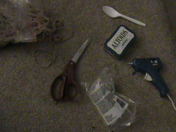 Paso 1: equipo de Se necesita una lata Altoids, cinta pato, clip binder, 3 bandas de goma, tijeras y una cuchara de plástico.Paso 2: Fijación de presilla de Binder Primero recortas pato cinta 2 veces como el estaño, entonces doblarlo y ponerlo hacia