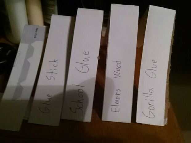 - Pegué 2 tiras de papel junto con una de 4 adhesivo, dejé 2 tiras sin pegar para un control