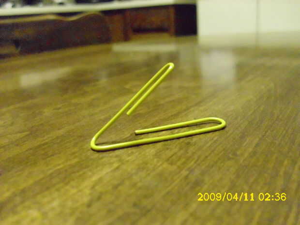 lo siento no hay fotos no hay.  Asilo, t tiene mucho tiempo. para esto se necesita:2 clips de papel y un par de pinzas. simplemente doblar uno de los extremos. Utilice un trozo de papel para probar.