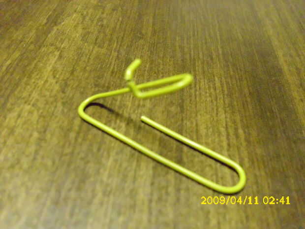 lo siento no hay fotos no hay.  Asilo, t tiene mucho tiempo. para esto se necesita:2 clips de papel y un par de pinzas. simplemente doblar uno de los extremos. Utilice un trozo de papel para probar.