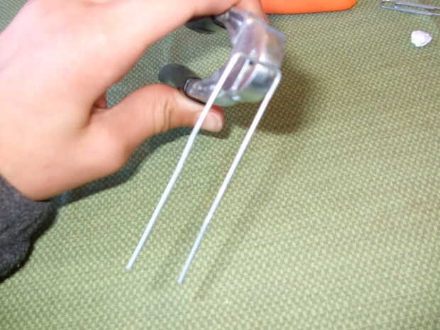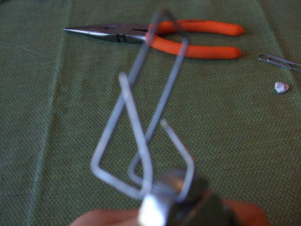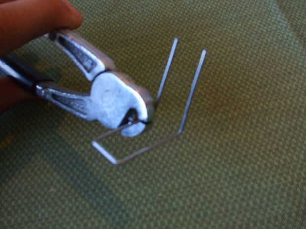 lo siento no hay fotos no hay.  Asilo, t tiene mucho tiempo. para esto se necesita:2 clips de papel y un par de pinzas. simplemente doblar uno de los extremos. Utilice un trozo de papel para probar.