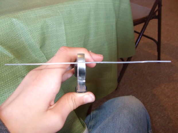 lo siento no hay fotos no hay.  Asilo, t tiene mucho tiempo. para esto se necesita:2 clips de papel y un par de pinzas. simplemente doblar uno de los extremos. Utilice un trozo de papel para probar.