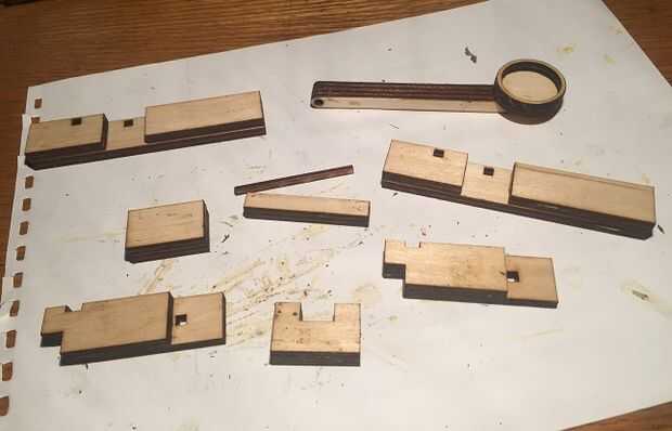 4) brazo: Finalmente, debes elegir uno de los rectángulos super pequeños y deslícelo en uno de lo agujero, luego el brazo, luego el agujero opuesto.