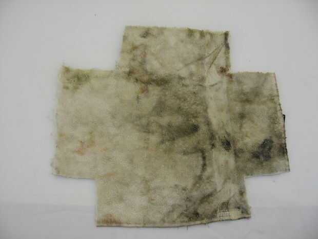 El trapo se convertirá en el bolsillo para el globo de agua. Se debe cortar en un gran "+" patrón. Así, que un grande 14" por 14" (no necesita ser perfecto) cuadrado y cortar 3" por 3" piezas de las esquinas. Se desea que dos de las fichas para poder doblar la madera, por lo tanto un plan como corresponde.