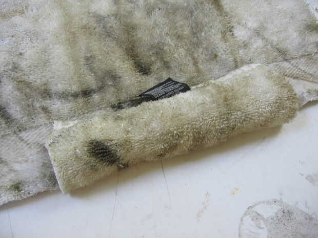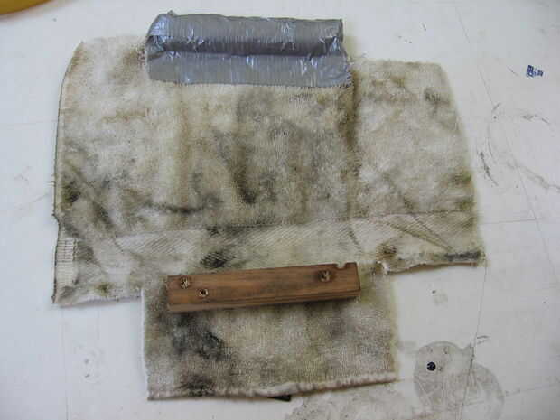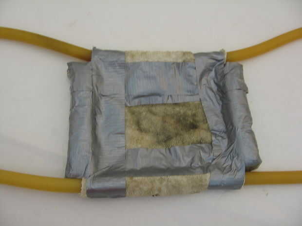 A continuación, coloque el tubo quirúrgico para que se ejecute sobre una de las otras dos pestañas. Entonces curva 180 grados para que se ejecute por el otro lado de la rag. Una vez más, la cinta el trapo sobre la tubería. Asegúrese de que usted realmente no cinta el tubo para que el bolsillo pueda deslizar libremente arriba y abajo de la tubería. Con cinta adhesiva todas las esquinas y las costuras para reforzarlos. No se puede tener mucha cinta en este proyecto.