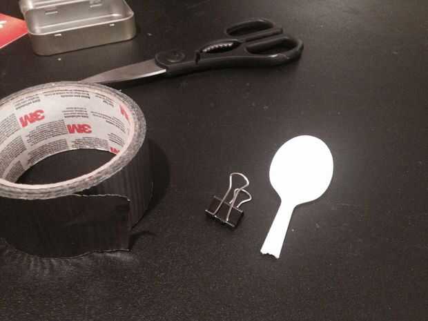 Corte una tira de cinta de 1,5 cm de espesor. Luego con cinta la cuchara al clip de la carpeta y asegúrese de que no se deslice. También es una buena idea para garantizar el enlace con una banda de goma firmemente envuelta alrededor de él.