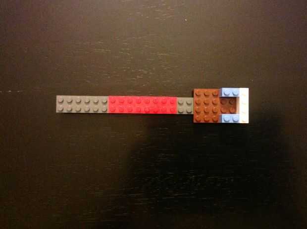 Adjuntar dos 2 x 10 piezas conectando una pieza plana de 2 x 6 en la parte inferior y 2 x un 8 pedazo a la parte superior. Coloque una pieza plana de rectángulo que es 4 x 6 en la parte superior de la palanca. Coloque un bloque de 1 x 4 en la última fila de la pieza de 4 x 6 y 1 x dos 2 ladrillos en frente. Esto mantendrá el objeto en su lugar antes de que está catapultada.