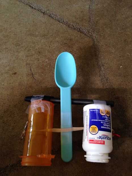 Luego necesitas la cuchara en el centro de la goma de la cinta.
