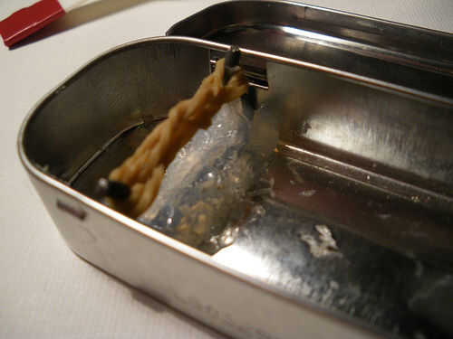 pensé esto después de ser inspirada en todos los kits de Altoids, frascos Nalgene el no caben en una de esas latas usé una Jabonera de viaje sin uso que tenía. Usé los frascos para que una pequeña cantidad de consumibles se podría llevar sin preocupa