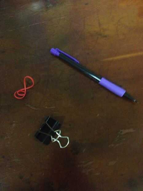 Necesita un pluma/lápiz, una goma y un clip binder.