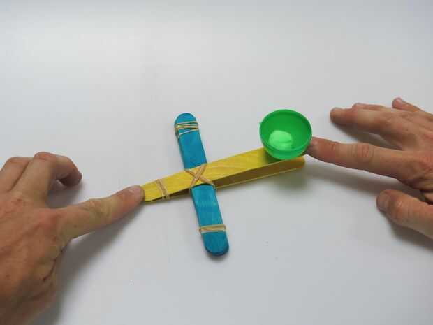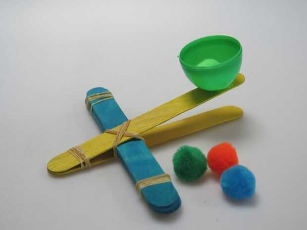 Después de lanzar unos pompones alrededor, trate de hacer algunos objetivos en papel o en tazas y ajustar la longitud de altura y palanca fulcro para jugar con diferentes diseños.