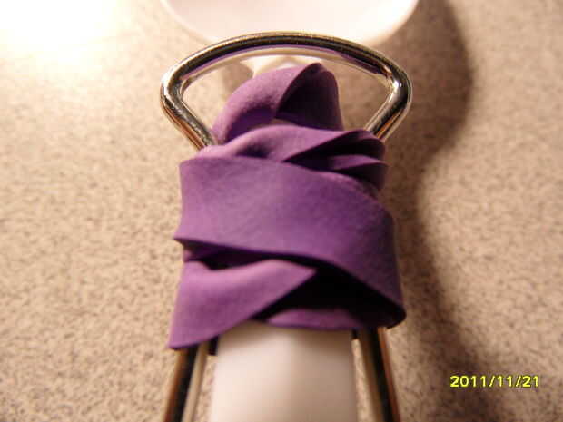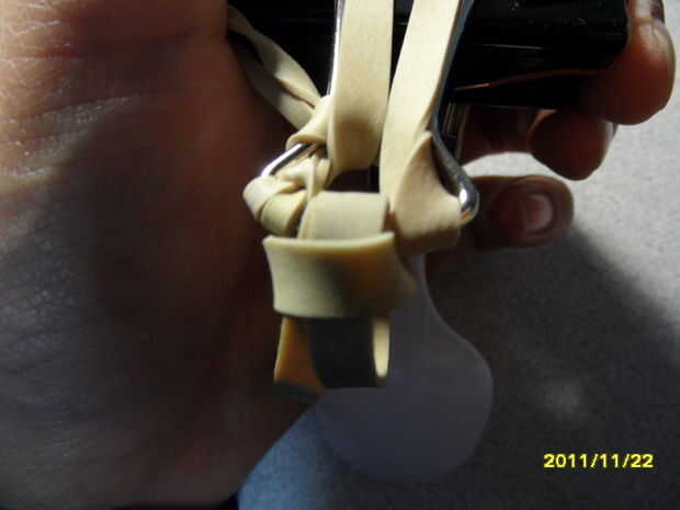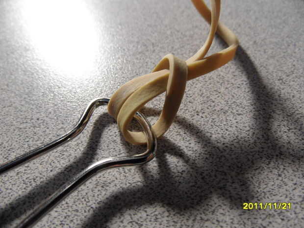 Coloque una banda elástica a través de bucle al otro "brazo" (refiera al cuadro dos.)