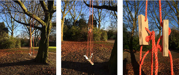 El columpio tiene la forma de una catapulta y se puede utilizar la catapulta para colocar el columpio.