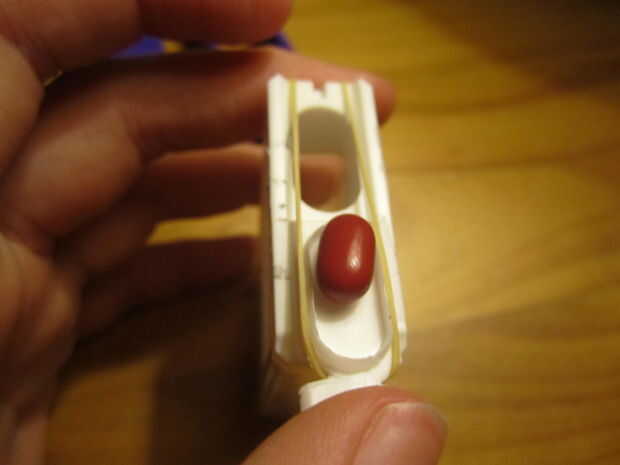 1. Open the lid a little bit.2. Incline hacia abajo sosteniendo la tapa parcialmente abierta.3. se carga un tic tac en el sello oval.4. manteniendo la tapa horizontal (para sujetar el Tic tac cargado) gire la caja completamente vertical.5. el resulta
