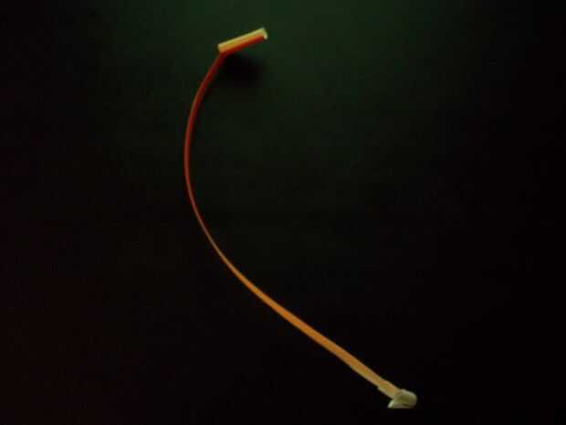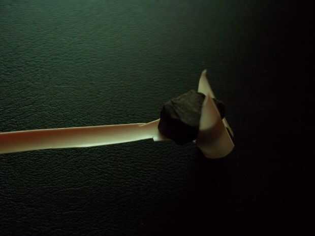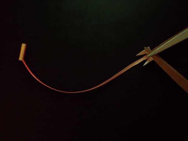Forman un barril en cada extremo de la pajilla cortando y dejando solo la banda roja para servir como la Honda (cuerda).
