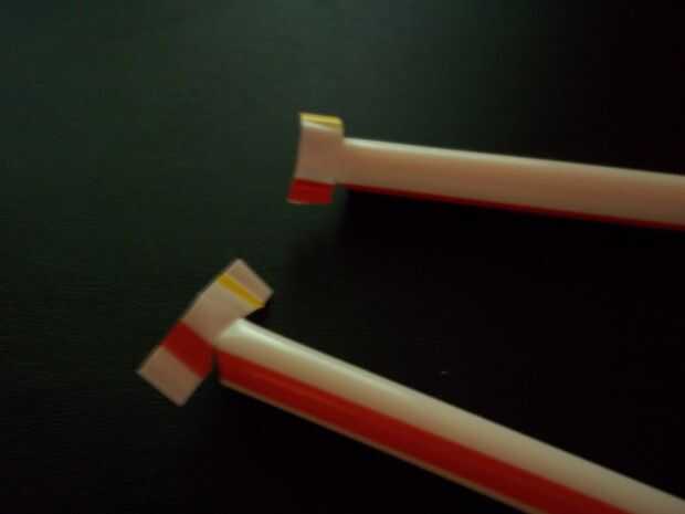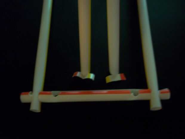 Observe las tres pajillas completas que se instalan en la base. Esos tres pajas fueron fileteados e insertados en la base paja para mantener las pestañas en su lugar, actuar un soporte lateral y coloque a punto para las ruedas (que no sucedió).