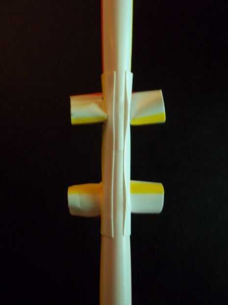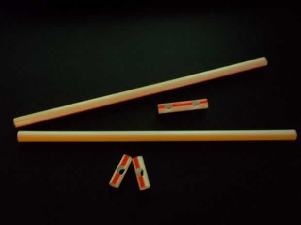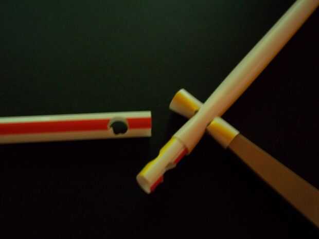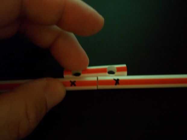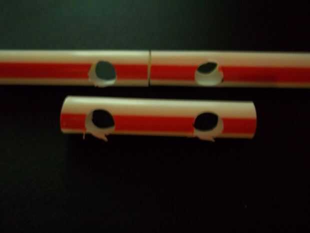 Guíese por la camisa exterior dónde perforar agujeros en las dos pajas de longitud completa que son para convertirse en el rayo.