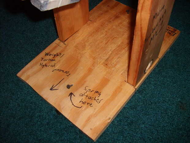 La base es una parte muy importante, teniendo en cuenta que tiene que apoyar todo lo que está arrojando. Te recomiendo aglomerado bastante entonces de madera contrachapada (PB puede ajustar debido a la tensión de carga de su proyectil).