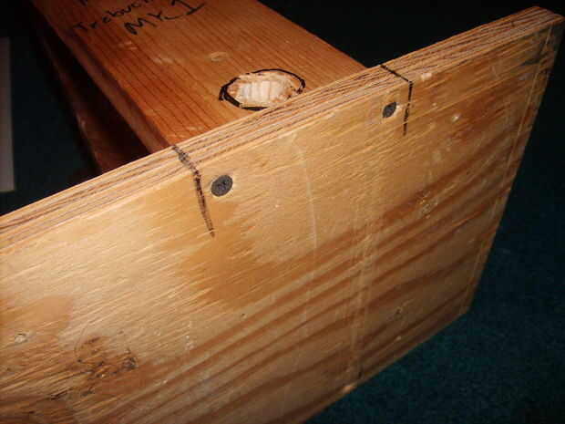 A continuación, use tornillos para fijar los brazos de la parte inferior de la base. taladro para arriba a través de la base y en los brazos. Los orificios deben estar en la parte superior de las tablas, más alejado de la base. Tenga cuidado con divisiones madera!