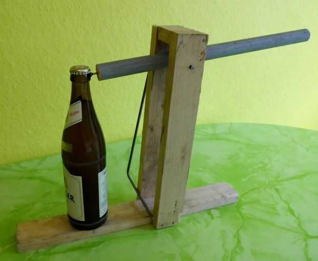 Quiero presentarles mi prototipo de un abrelatas de botella, que me recuerda a algún tipo de catapulta.