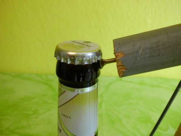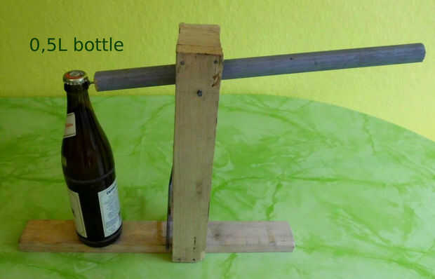 --> Si desea crear este abridor de botellas de 0, 33 L botella, tienes que construir la palanca un poco más baja, con un ángulo similar como con las botellas 5 L 0,.