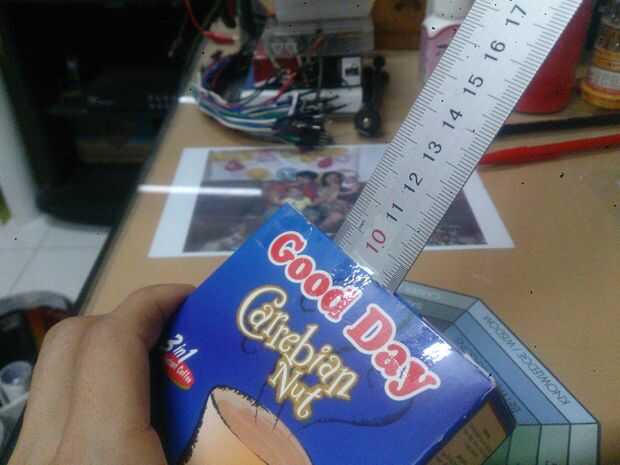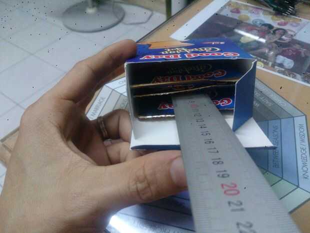 Poner tu regla dentro de la caja. Poner diagonalmente si ves a los lados. Desde la esquina inferior izquierda a la esquina superior derecha. Puede utilizar cinta adhesiva para pegar el gobernante a la caja para mantener su posición diagonal.
