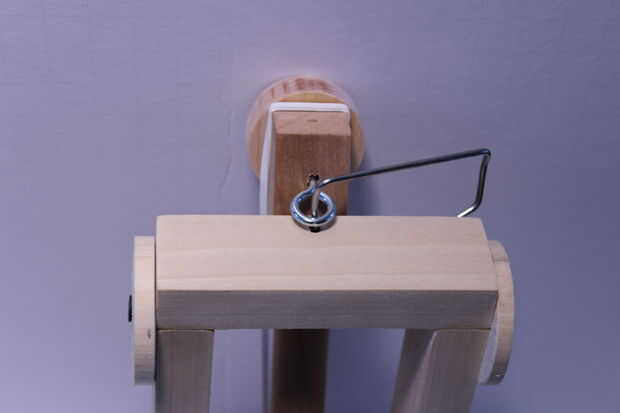 estoy seguro que hay muchos diferentes y mejores formas de agregar el mecanismo de liberación. Simplemente atornillar un tornillo de ojo en el extremo del brazo de lanzar en la parte inferior, luego mantenerse en posición y perforado en la parte posterior de la catapulta a través de la abertura del tornillo de ojo. luego usar un colgador de ropa o algún grueso calibre de alambre para sostener la "amartillado". Entonces cuando usted esté listo para disparar simplemente el cable de halar.