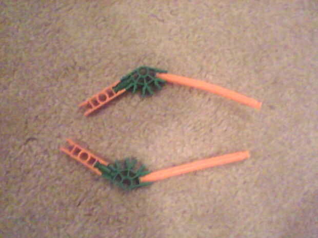 ahora (X2) conectar un conector verde con una barra verde para un conector recto naranja y una barra flexible naranja al otro lado del conector verde.