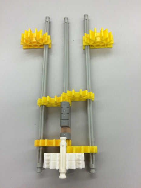 Conecte los conectores blancos del paso 16 hacia el extremo de la varilla de media caña gris como se muestra. Luego deslizar todas las piezas de la barra gris media hacia el final con los conectores blancos.