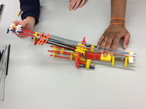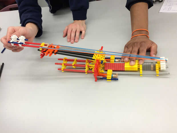 Carga la cesta de la catapulta, tire del brazo hacia atrás y soltar para disparar la catapulta K'nex! Para mejores resultados, mantenga una mano en la parte delantera base mientras dispara la catapulta.