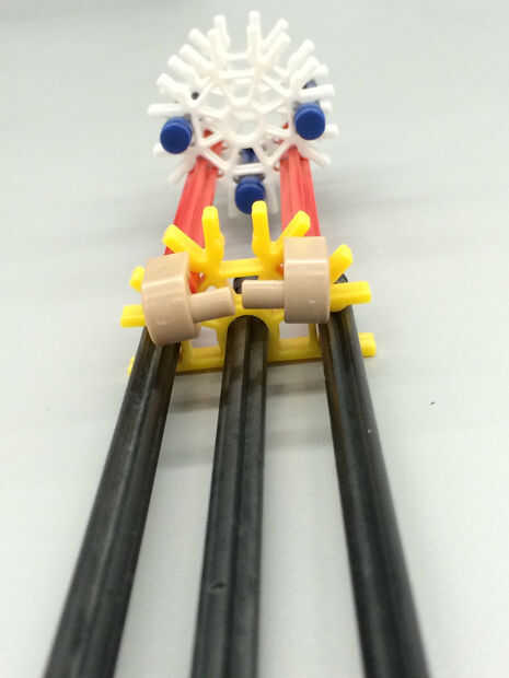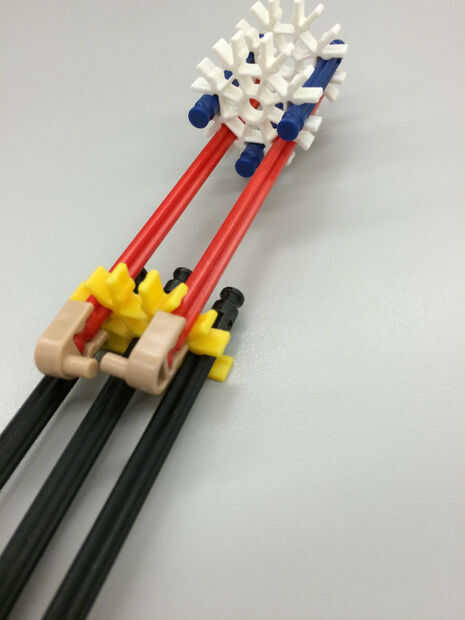 Conectar 2 barras negras en los extremos del conector amarillo y luego deslice otra barra de negro en el centro del círculo del conector amarillo. Diapositiva de las barras negras de la cesta.