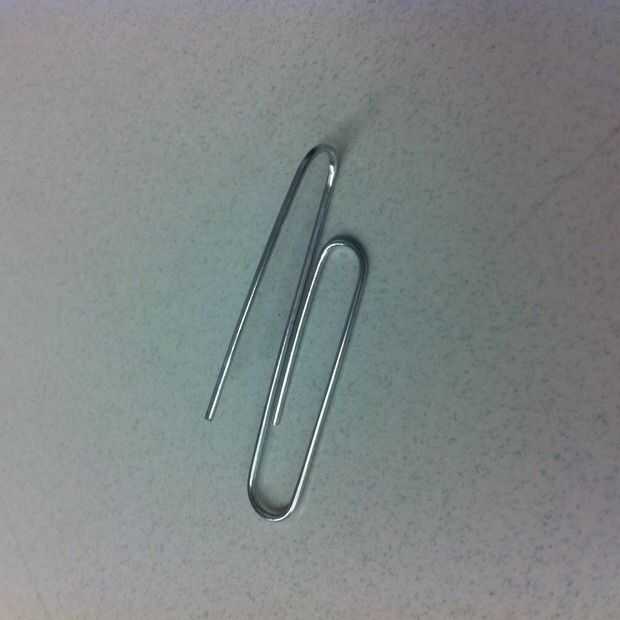 • Dos clips de papel con gran curva exterior hacia afuera 90 grados (ver fotos).