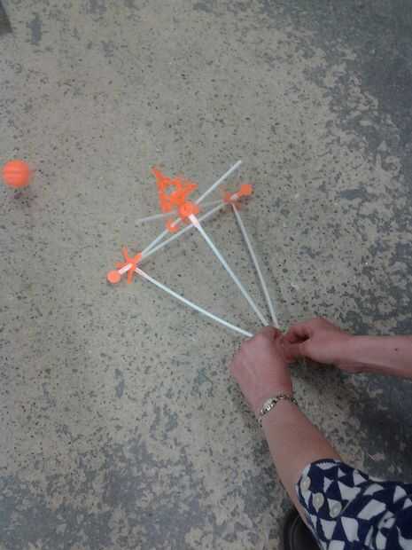 Strawbees son piezas de plástico que pueden utilizarse para conectar Pajitas para bebidas de tamaño estándar. En un espacio local de hackear intentamos construir una catapulta con estos conectores, pajillas, gomas y otros artículos misceláneos.Mi dis