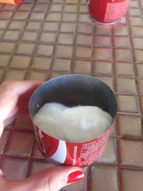 Coloque um algodão com alcool na garrafa cortada na metade.
