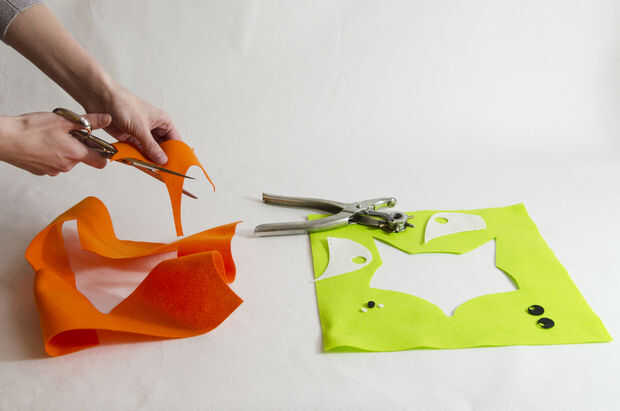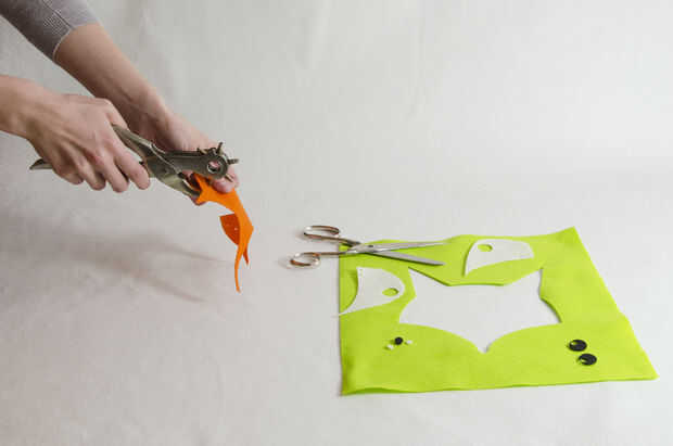 -Seleccione la deseada sentía patrón (patrón de cuento de hadas de enlace - enlace patrones de animales de compañía), dibujar en un trozo de fieltro (23 x 23 cm) y corte hacia fuera. Perforar el fieltro en la posición que desea insertar los LEDs con una correa del sacador. Marca esto agujeros sobre un lienzo de 20x20cm, de esta manera usted sabe dónde coser los LEDs.