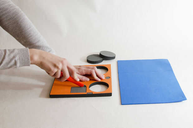 -Utilizar la máscara para cortar la almohadilla gris con un cortador.