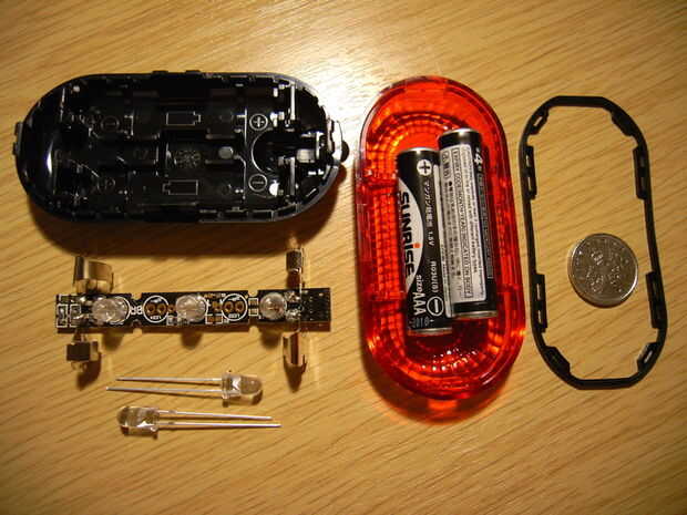 de inspirado en Evil Mad Scientist Cylon Jack-o-Lantern he construir un Cylon bicicleta luz para mi hijo...En primer lugar, leer el artículo de EML para asegurarse de que se siente a gusto con la electrónica. Tuve un montón de cuestiones que el tempo