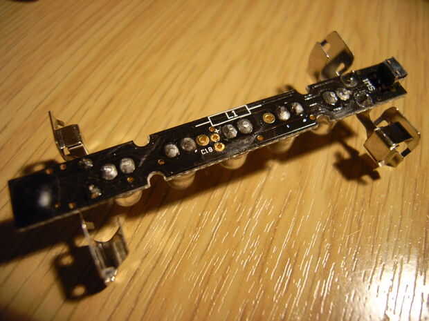 Coloque los LEDs en el PCB para ponerlos en la misma forma redonda como los LEDs existentes (sólo trabajan una forma redonda). Luego soldarlos en el lugar. Me resulta más fácil soldar una pierna en su lugar, luego doblar el LED en la posición correcta y luego la otra pierna de la soldadura.