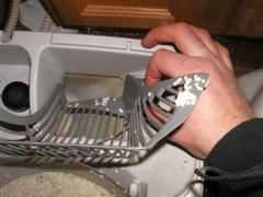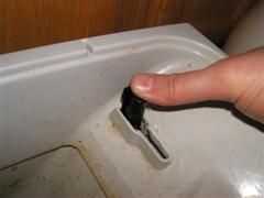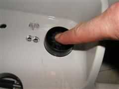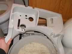 Para quitar la cubierta superior, mantenga pulsado el impulsor con el pulgar y con la otra mano, llegar a la parte posterior y jale hacia arriba el labio. Si usted no mantiene pulsada en el impulsor que lo acaba levantar CatGenie entera del suelo.