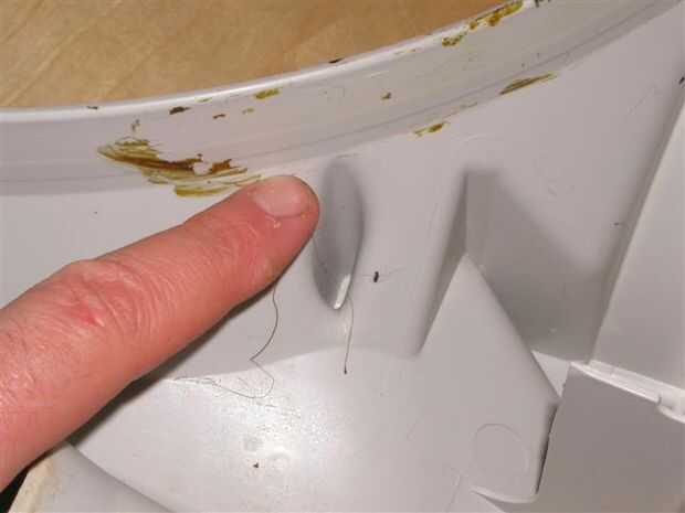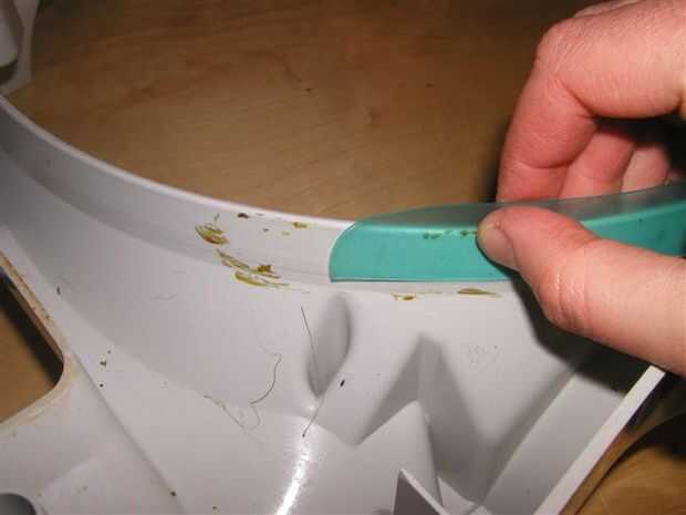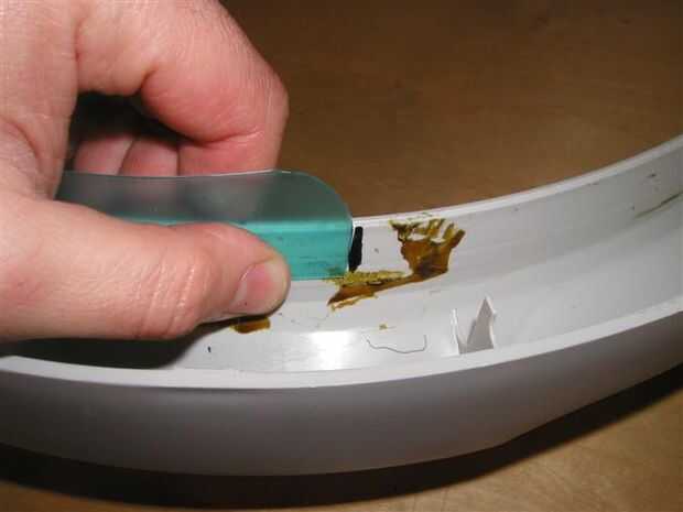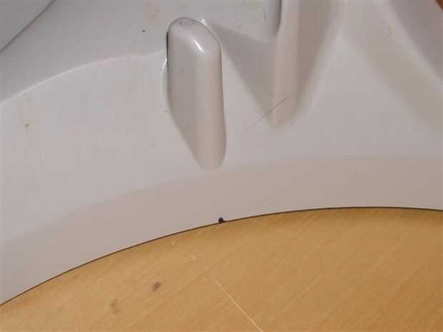 Con una mano, sostenga un extremo de la pieza arqueada de la estera contra el borde de la carcasa, con el arco interior hacia arriba. Con la otra mano sigue hacia abajo hasta el otro extremo de la alfombra y (soltando el principio final) márquelo allí.