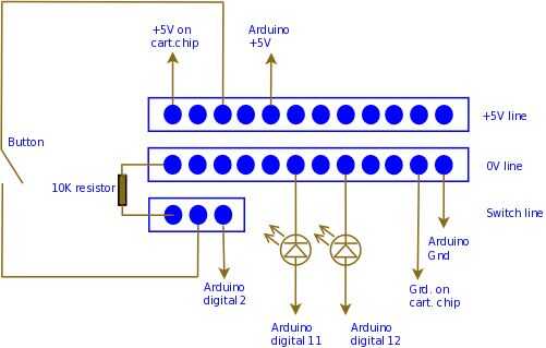 Los + 5V y tierra líneas desde el chip del cartucho pueden soldarse entonces para 2 de terminales faston. Las clavijas deben conectarse entonces a nuevos cables que se conectan a los componentes o a los conectores Arduino