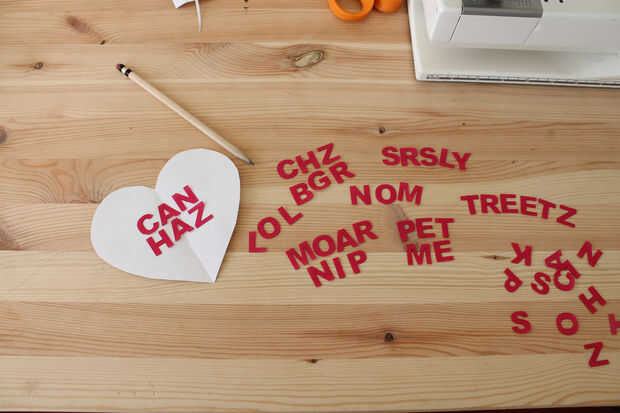 Para las letras, usa forro fusible resistente y corte las letras hacia fuera, convirtiéndolos en hierro-en parches.