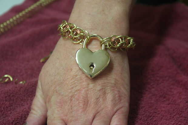 Cautivo de la armadura latón y cobre corazón Pulsera