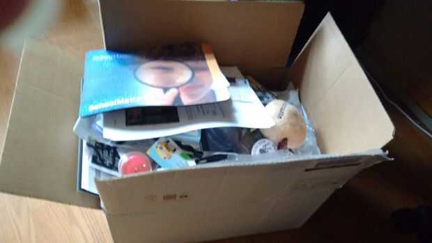 El primer paso en este método decluttering es simplemente barrer todas esas cosas en el escritorio y en una caja.