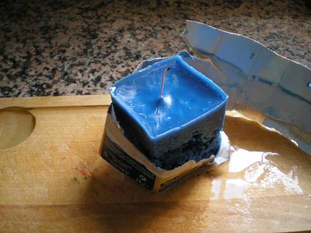 No olvides guardar restos de cera en los pliegues del molde: se pueden utilizar en el futuro obras. También, cuando la vela se prolonga, puede reutilizar la cera restante y otra para hacer nuevas velas únicas.