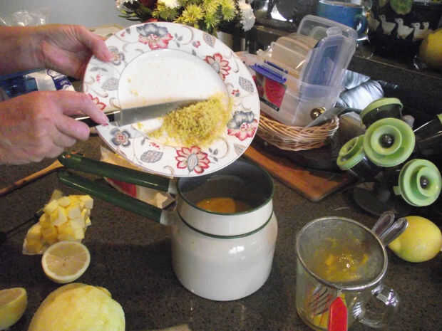 Exprimir el jugo y añadir la ralladura y el jugo a los huevos