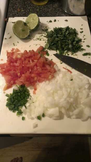Lavar el tomate, jalapeño, media un manojo de cilantro y Lima. Se pela la cebolla por lo que no tiene mucho sentido en enjuagarlos pero generalmente hago de todos modos.