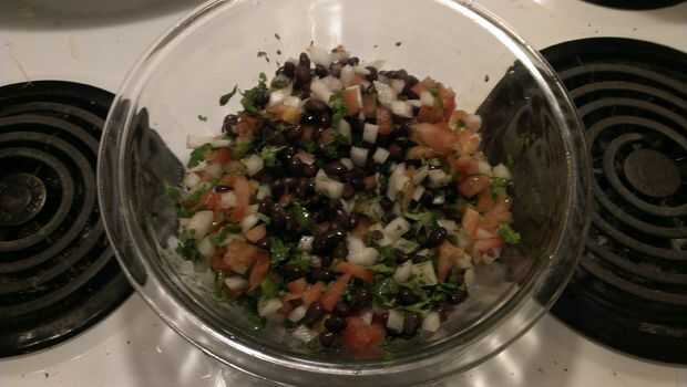 Añadir las verduras en el recipiente que contiene el frijol negro. Lanzarlas todas juntas y exprimir el limón sobre la parte superior de la mezcla. La cal se añadir brillo al sabor del plato no sólo pero también mantener todo fresco más tiempo. El vinagre es otra posible opción de elemento ácido que podría utilizar en lugar de jugo de cítricos pero me gusta cal para esta aplicación.