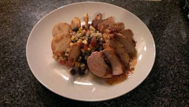 Texas Caviar hace un gran complemento a los alimentos a la parrilla y agrega un elemento fresco y aromático maravilloso a tus platos. Aquí he hecho pechugas de pollo a la brasa en mi parrilla que glaseado con una salsa de Chile del cal. Utilicé el Caviar de Texas como un lado para este plato y dispuestos tal que ayudó a mostrar el pollo después de la había rebanada. El plato entonces fue adornado con mini pita chips y un swoosh del esmalte de cal de Chile. Delicioso!